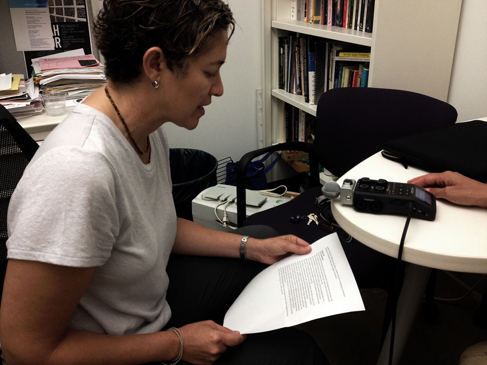Artist Patricia Villalobos Echeverria doing some voice over work in Kalamazoo, Michigan.