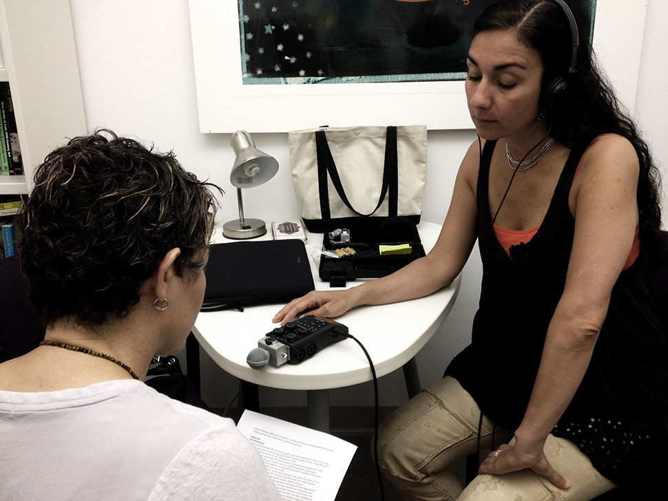 Carolina Loyola-Garcia and Patricia Villalobos Echeverria doing some voice over work in Kalamazoo, Michigan - August, 2014.
